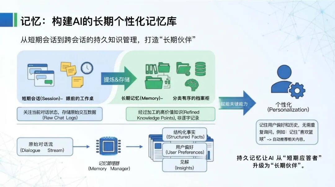 Google《Context Engineering: Sessions & Memory》白皮书解读 摘要:本文解析Google最新发布的上下文工程白皮书,重点探讨构建智能Agent的两大核心要素——会话(Sessions)与记忆(Memory)。通过精读与结构化整理,形成了一套简明PPT指南,系统阐述了如何利用上下文工程打造更智能、个性化且持续学习的AI Agent。内容涵盖理论框架与