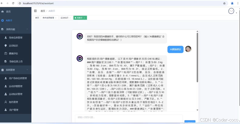 基于springboot + vueAI健康管理系统