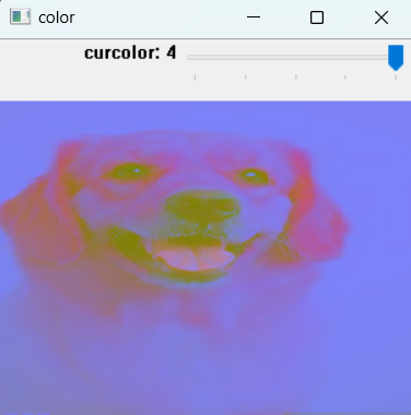 cv2.createTrackbar('curcolor', 'color', 0, 4, callback)