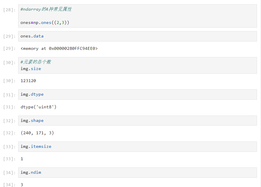 (2)ndarray的四种常见属性: