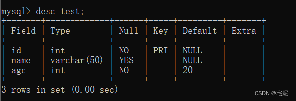 alter ssex set default'男'             (增加一个值 男)default  添加默认值