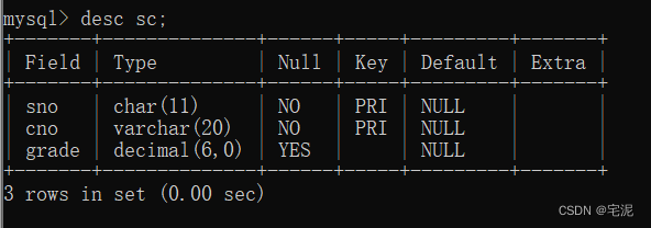 ①主键约束学号son,char  主键不能为空,不能重复(not null)