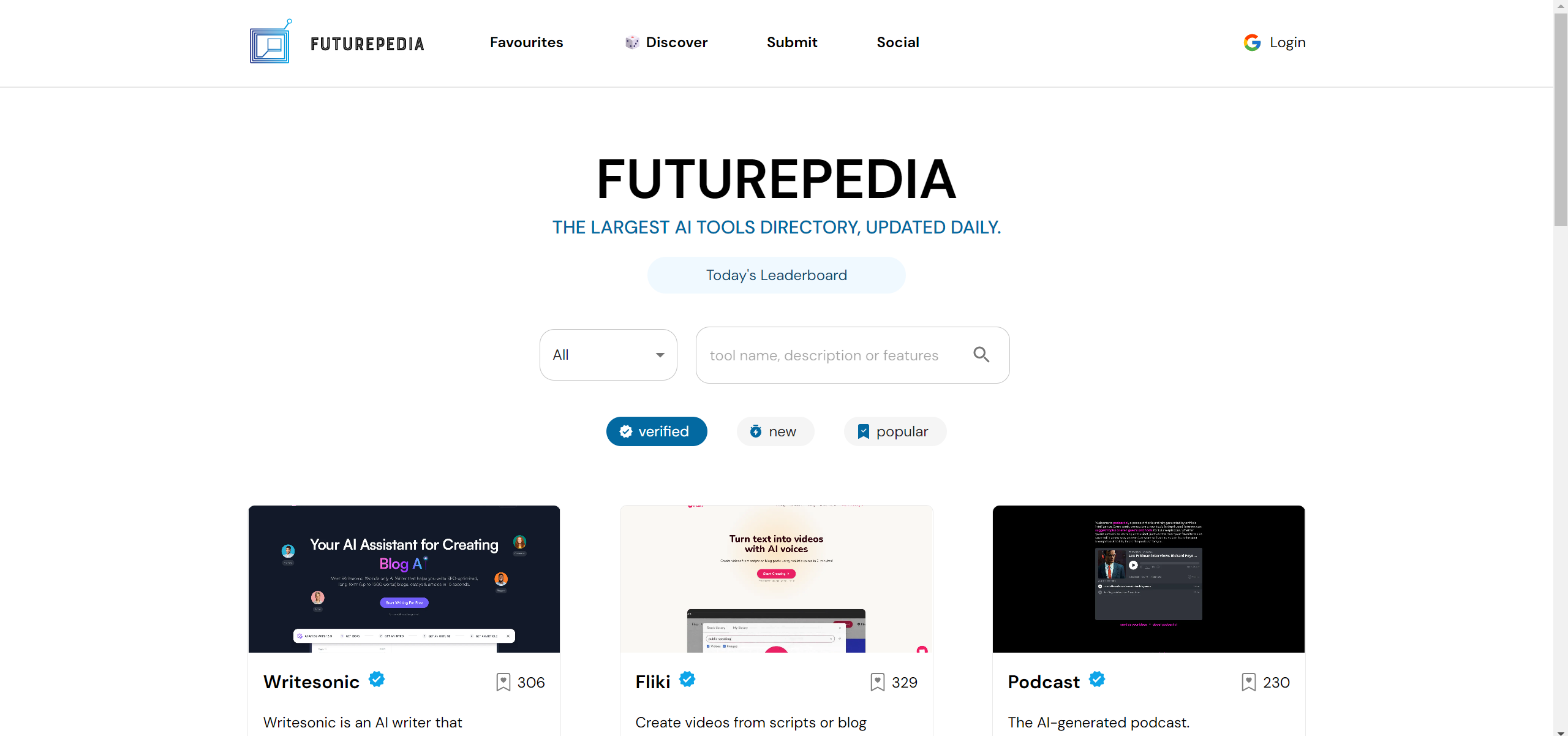 Futurepedia:Futurepedia - The Largest AI Tools Directory | Home
