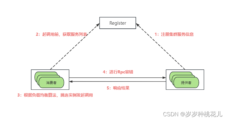 作用二:服务发现,服务消费者(Consumer)在启动时,会向注册中心订阅⾃⼰需要的服务,注册中心会将相应的服务提供者信息返回给消费者,消费者据此可以调用对应的服务。