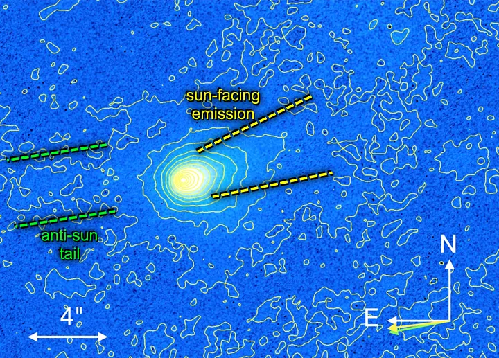 这些微型探测器很可能会表现出非重力加速度,而不会出现彗星的明显特征——彗尾。即使是最大的地面望远镜以及韦伯太空望远镜也无法分辨出合理的探测器尺寸。我们最大的航天器长度为10米,在与地日间距相当的距离上,其角大小约为10微角秒。即使它从末端发射毫米波长的辐射,我们最先进的事件视界望远镜(其孔径与整个地球大小相当)也无法分辨该探测器。