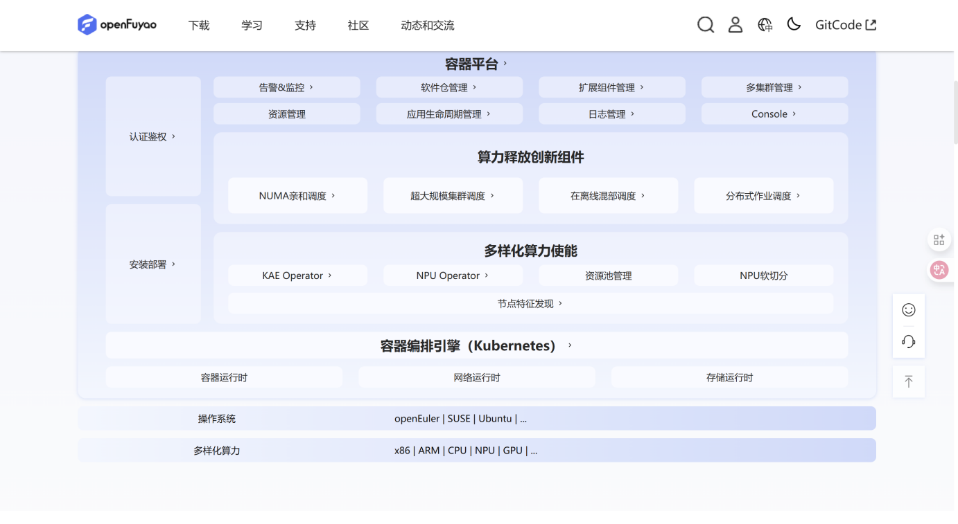 openFuyao一体化方案提供以下核心能力: