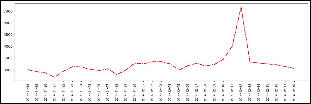 月均流量,在12月12日的时候,人数陡然增加,说明促销活动是有效的