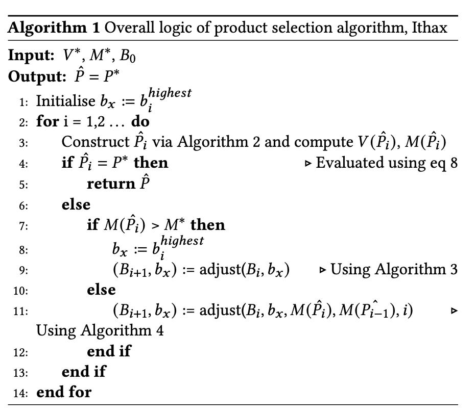 Ithax is a multi-objective optimization algorithm, developed in close collaboration with the Retail Pricing operations team at ASOS. Using a core mechanic inspired by binary search, it successfully constructs markdown product sets that satisfy targets in the following two objectives: