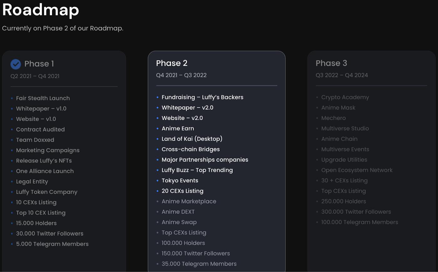 LUFFY 代币目前处于第 2 阶段,展示了最近的里程碑和路线图进展 — morehere