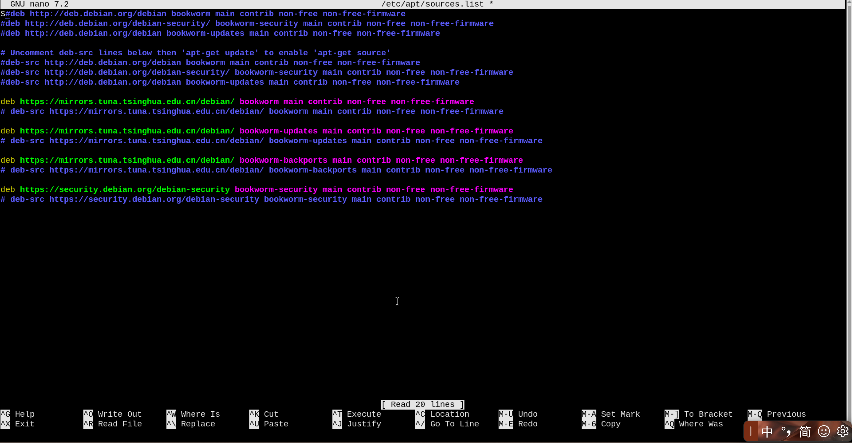 把前面复制的源粘贴进来,快捷键Ctrl+Shift+V,粘贴的时候不要有中文,注释里面也不可以有,否则粘贴不上,之后保存,快捷键Ctrl+X,确认Y,回车退出。打开配置文件,可以选择nano编辑器或vim编辑器。操作系统为Debian12 (bookworm)在此链接中找到aarch64,并复制对应的源。