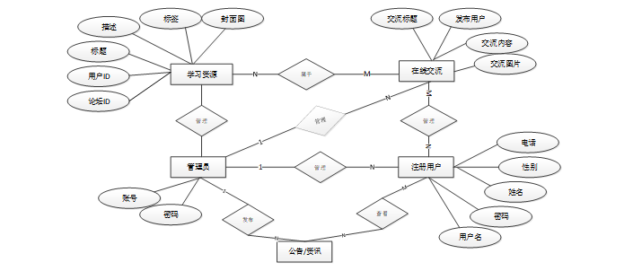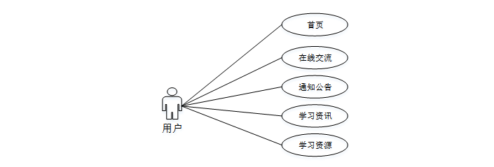 用户进入系统可以查看首页、在线交流、通知公告、学习资讯、学习资源等操作。用户用例图如图2-1所示。