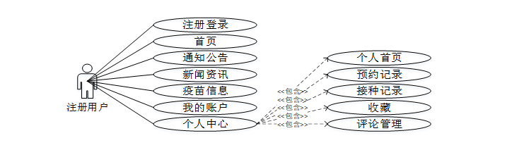 图 3-1疫苗接种预约系统平台系统注册用户角色用例图