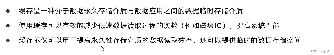 现在我们使用的程序都是通过去数据库里拿数据然后展示的长期对数据库进行数据访问这样数据库的压力会越来越大数据库扛不住了创建了一个新的区域程序访问去缓存 缓存区数据库缓存里放数据。