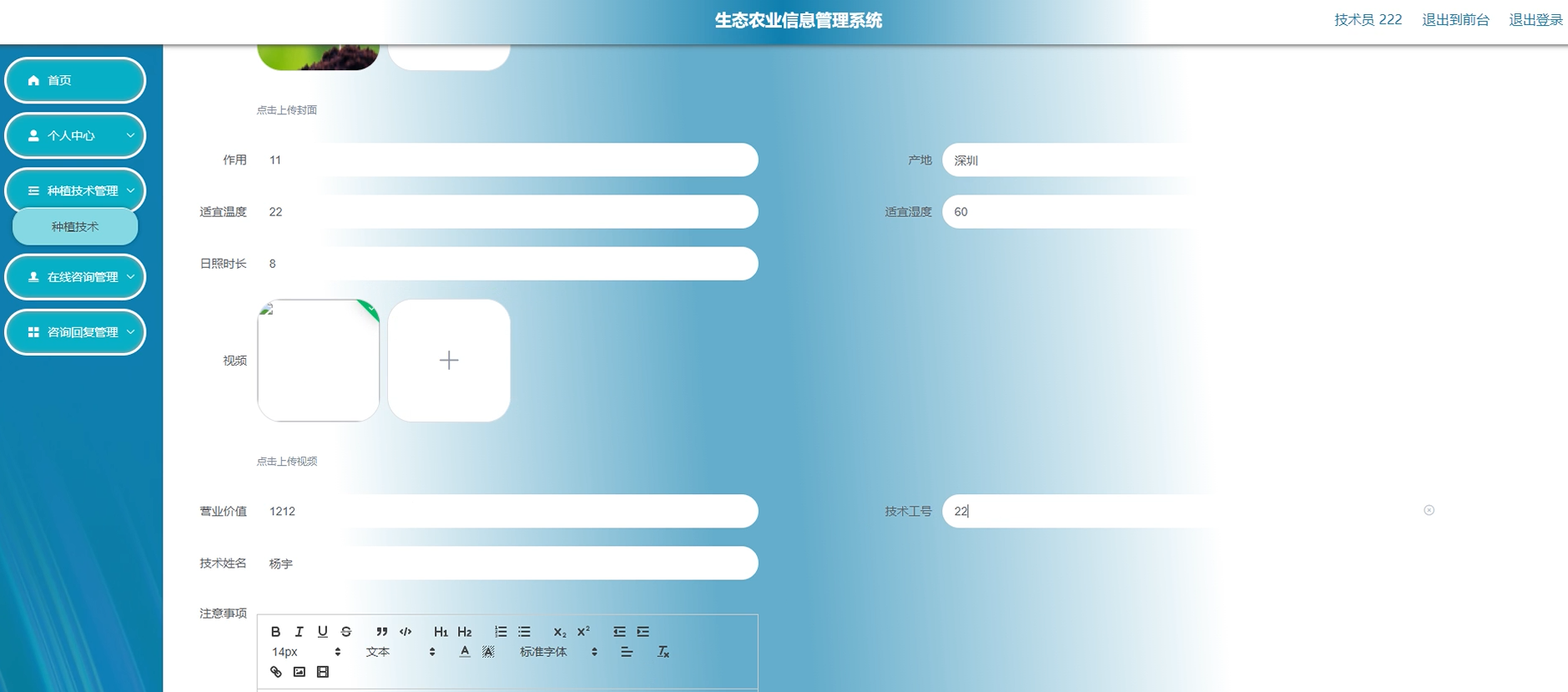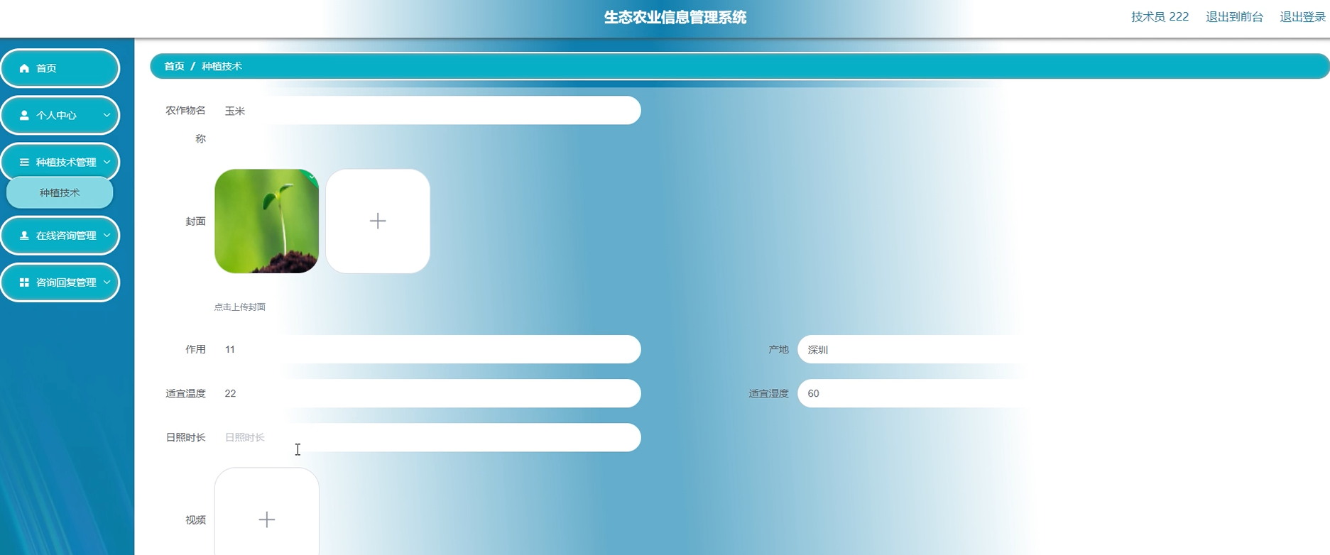 - 种植技术管理:支持技术文档上传、关键词检索、版本控制