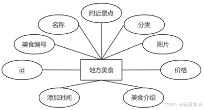 管理员可以通过输入地方美食对地方美食列表进行精确查询,查看地方美食的详细信息,包括美食编号、名称、图片等。此外,管理员还可以对景点信息进行管理操作,如查看、修改、删除操作。管理员地方美食查询管理页面如图5-3所示。