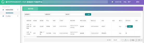 用户可以通过输入线路名称对预定线路列表进行精确查询,查看线路的详细信息,包括线路名称、出发地、终点等。此外,用户还可以对其进行详情查看。线路预定页面如图5-6所示。
