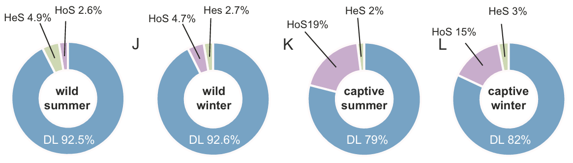 本研究通过整合宏基因组和宏转录组分析,全面揭示了金丝猴肠道微生物组如何通过群落组成和功能的可塑性变化来响应季节性饮食转变。野生金丝猴肠道微生物组展现出显著的季节性适应特征,夏季帮助宿主消化植物性食物并降解植物次生化合物,冬季则通过富集特定的微生物类群和功能基因来提高地衣消化效率和脂肪代谢能力,帮助宿主应对低温胁迫和食物短缺。