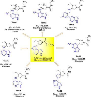 图7. 参考化合物与七个新合成化合物的结构和生物抑制活性