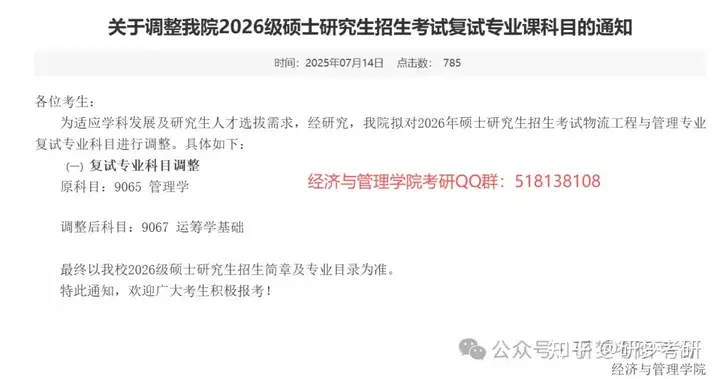 物流工程与管理专业复试专业科目调整为9067运筹学基础