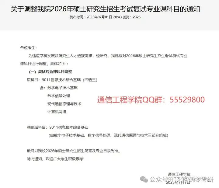 通信工程学院调整后科目,9011信息技术综合基础:数字电子技术基础、数字信号处理、现代通信原理与技术三(删除:计算机网络)