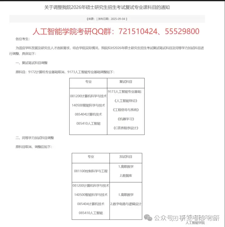 计算机科学与技术/智能科学与技术/计算机技术、人工智能复试统一调整为 9173人工智能专业基础:《人工智能导论》《工程信号与系统》《机器学习》《C语言程序设计》