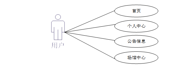 用户包括:首页、公告信息、场馆中心等功能。用户用例如图3-8所示。