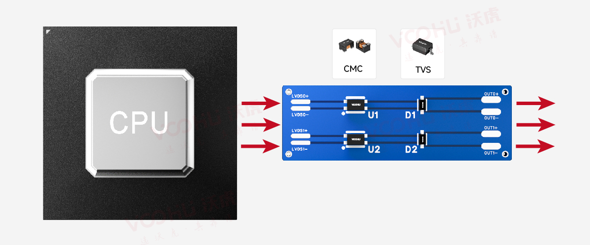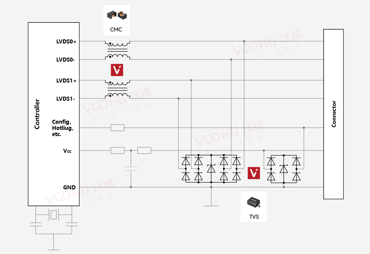 Q2: 沃虎共模电感与TVS如何协同保护LVDS信号?