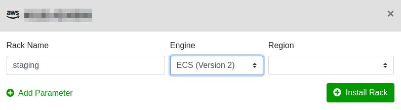 *With a specific note before the “Install a Rack” step advising to ensure the Rack is being created on ECS (Version 2) engine.