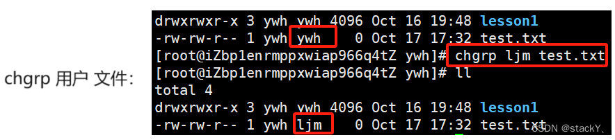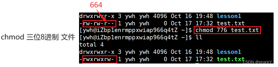 - 说明:只有文件的拥有者和root才可以改变文件的权限