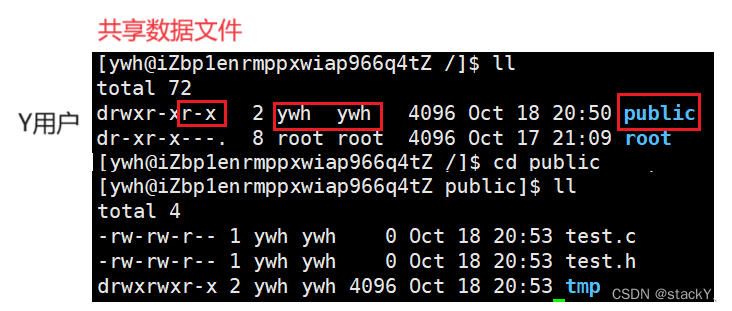 例如:Y用户想要将自己的数据分享给J用户,那么Y用户首先在创建了一个自己的目录,里面存放共享的数据: