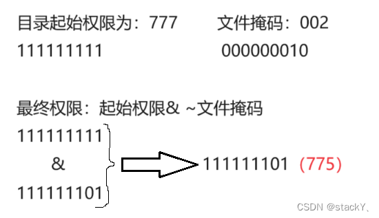 但实际上你所创建的文件和目录,看到的权限往往不是上面这个值。原因就是创建文件或目录的时候还要受到umask的影响。假设起始权限是mask,则实际创建的出来的文件权限是: mask & ~umask