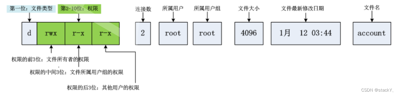 - 读(r/4):Read对文件而言,具有读取文件内容的权限;对目录来说,具有浏览该目录信息的权限