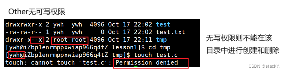- 可写权限: 如果目录没有可写权限, 则无法在目录中创建文件, 也无法在目录中删除文件。