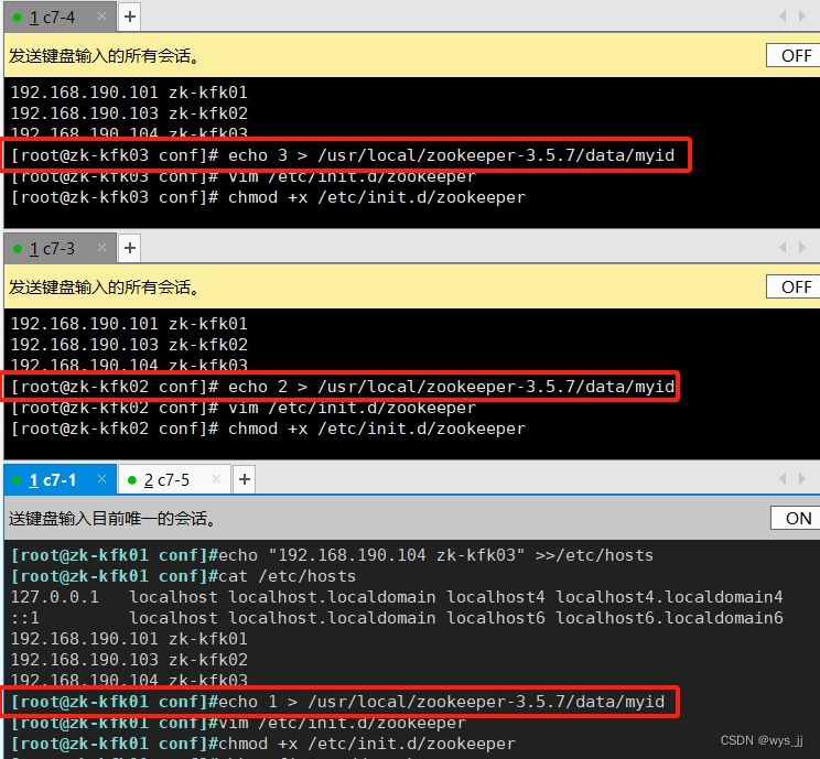echo 3 > /usr/local/zookeeper-3.6.3/data/myid