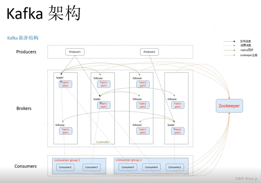 partition: 分区一个topic可以被分成一个或者多个partition分区,用来加快消息的传输(读写)副本对partition 进行备份Leader 负责读写,follower负责备例