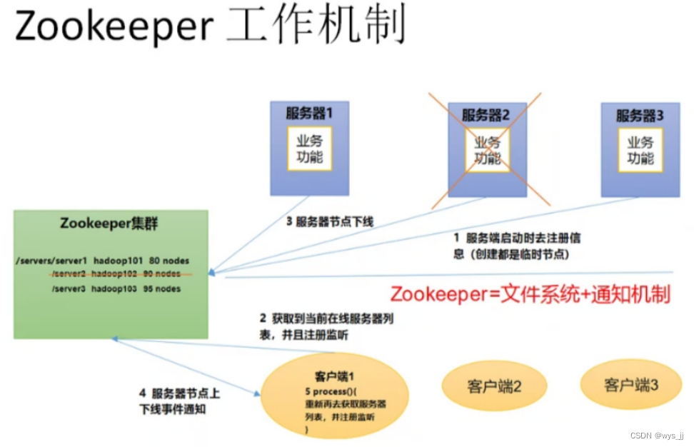 (2)zooKeeper可以实现实时监控节点状态变化。可将节点信息写入ZooKeeper上的一个zNode。监听这个zNode可获取它的实时状态变化。
