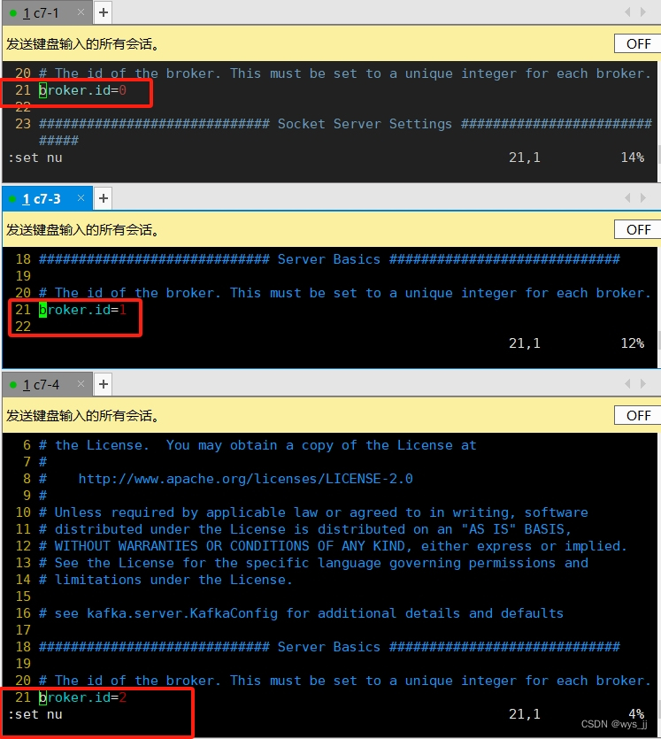 num.partitions=1 #65行,topic在当前broker上的默认分区个数,会被topic创建时的指定参数覆盖