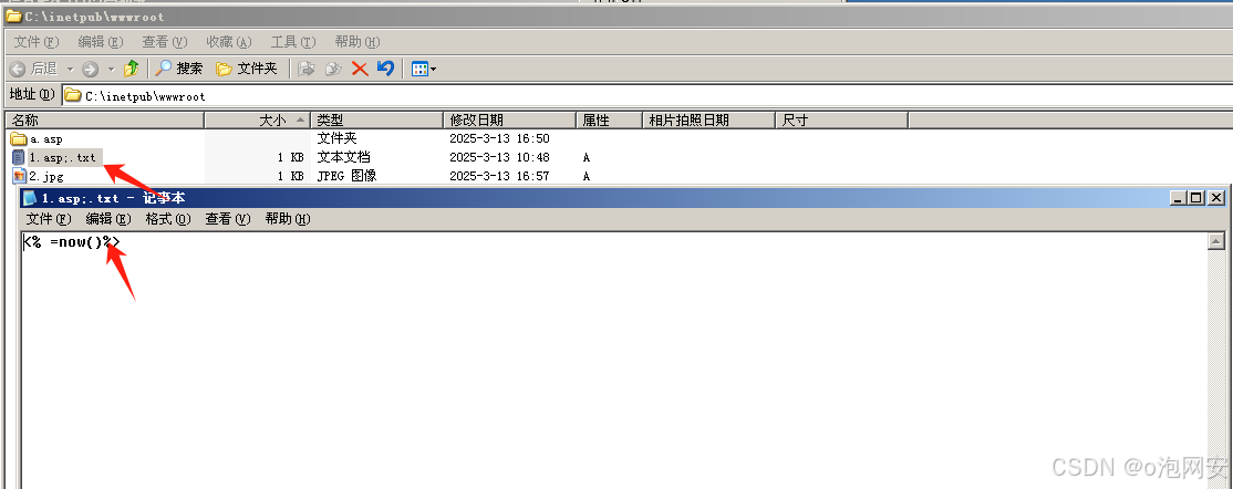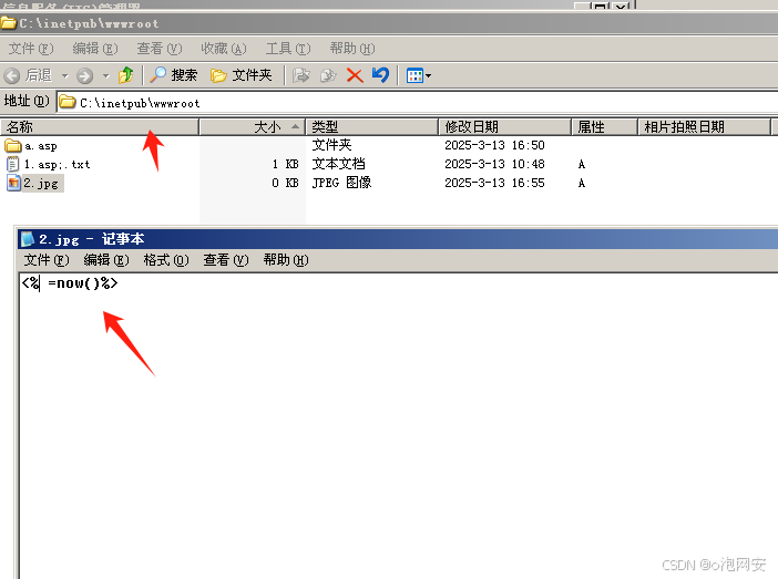2.在a.asp中新建⼀个jpg⽂件。内容为<%=now()%> asp代码。