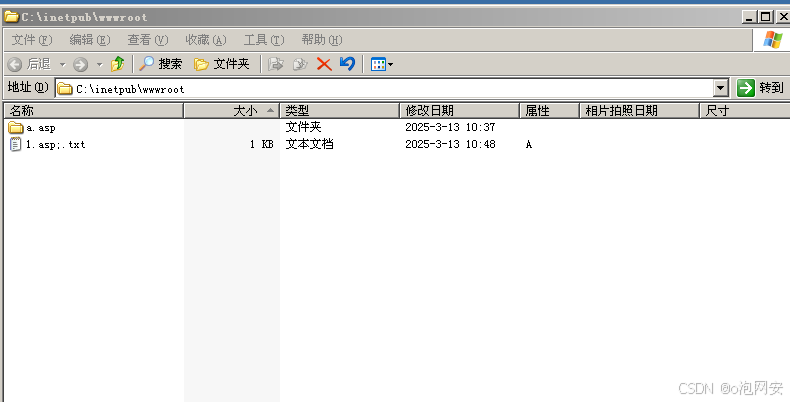 在iis6.x中,.asp⽂件夹中的任意⽂件都会被当做asp⽂件去执⾏