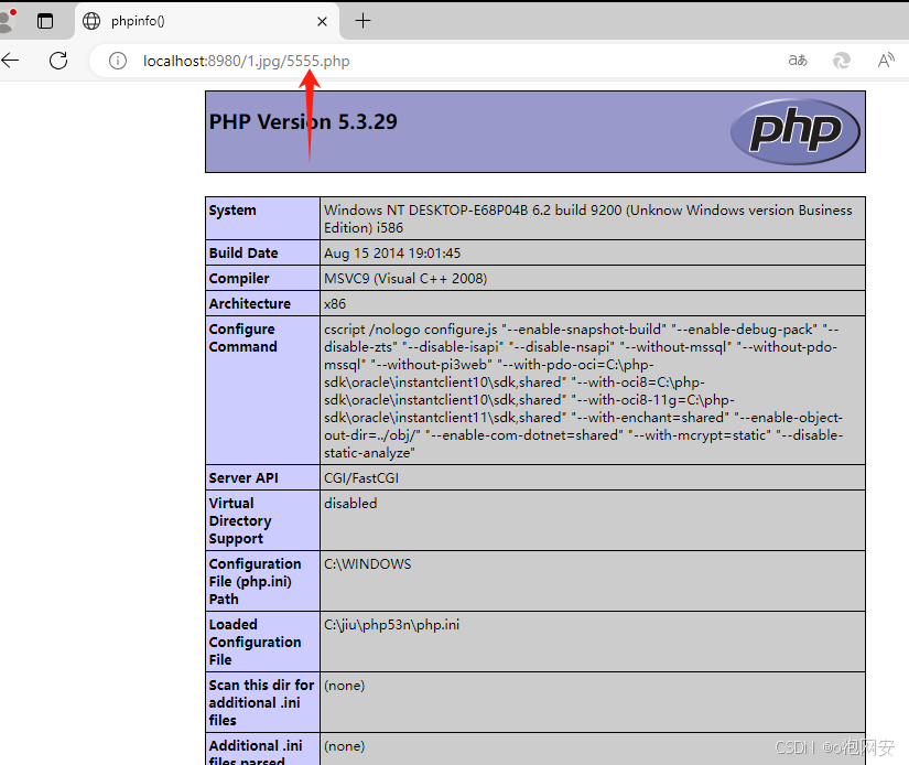 5. 如果单纯访问1.jpg是出不来的 我们在后面加个 xxxx.php即可给php代码执行(深度利用可以getshell 将phpinfo()改为一句话木马即可)
