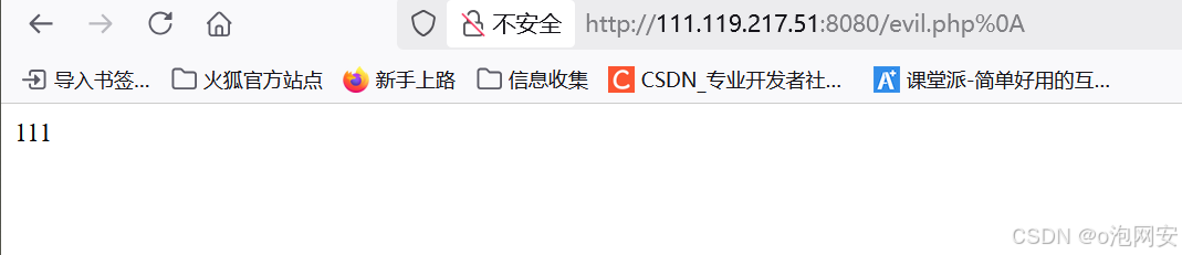 4.访问上传的evil⽂件在后⾯加上 %0a 再访问发现解析了其中的PHP代码,但后缀不是php说明