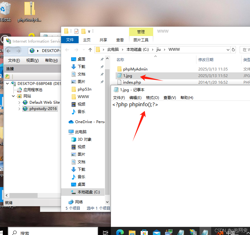 4. 在网站根目录写个1.jpg 内容为php代码的