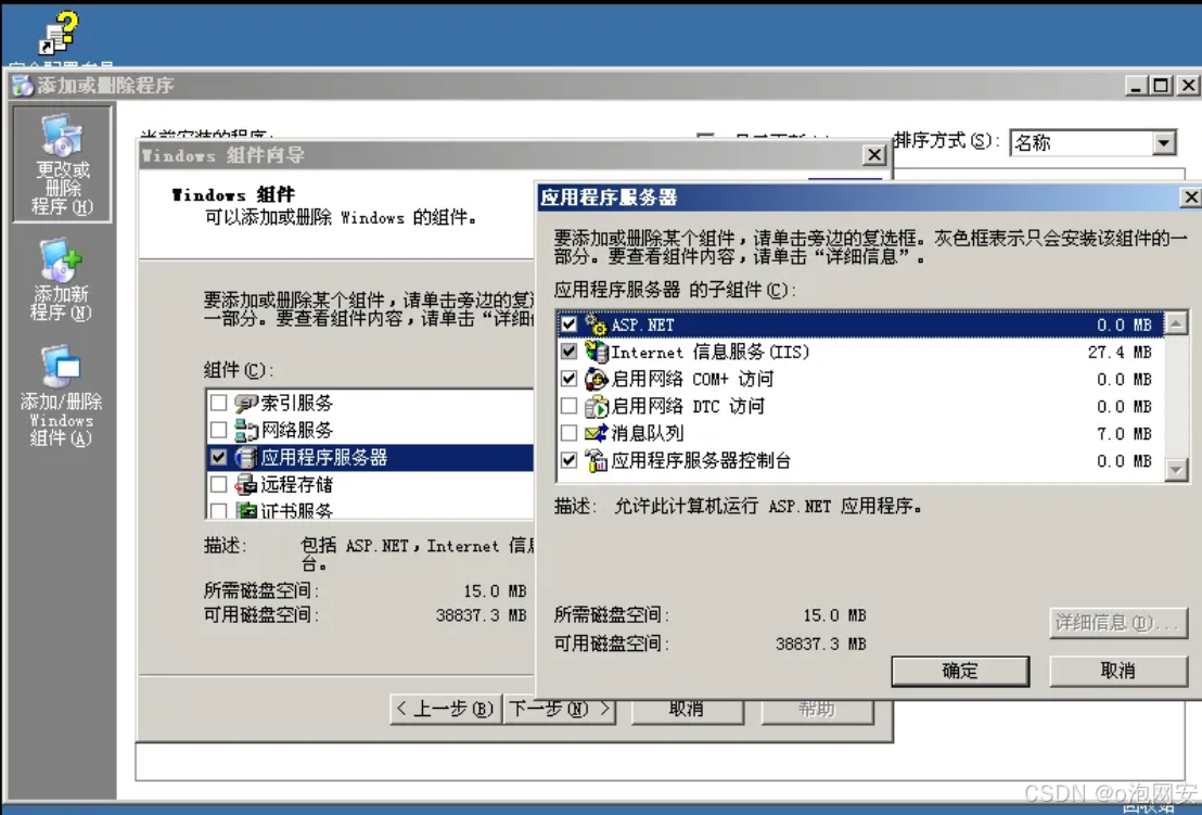 1 安装iis 控制⾯板--添加或删除程序---添加/删除windows组件