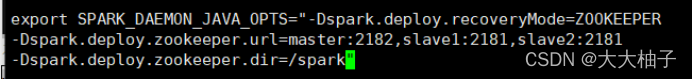 export SPARK_DAEMON_JAVA_OPTS="-Dspark.deploy.recoveryMode=ZOOKEEPER