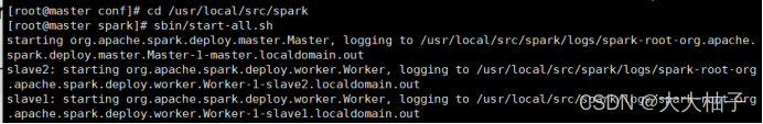 修改完成配置文件后,将spark目录分发至slave1和slave2节点
