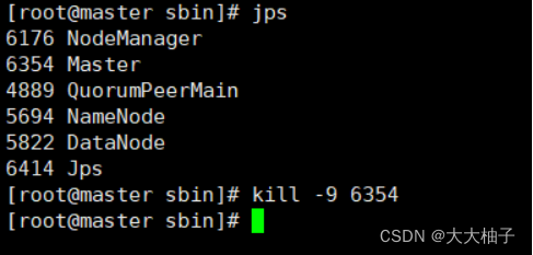 关闭master节点上的master进程,或者通过jps查看master进程端id,在杀死它,任选一种即可。