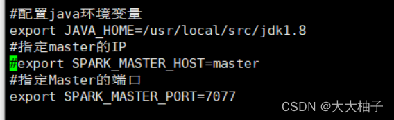 4.修改spark-env.sh文件,在该文件最后位置添加以下内容:(其中的master是主机映射的IP)