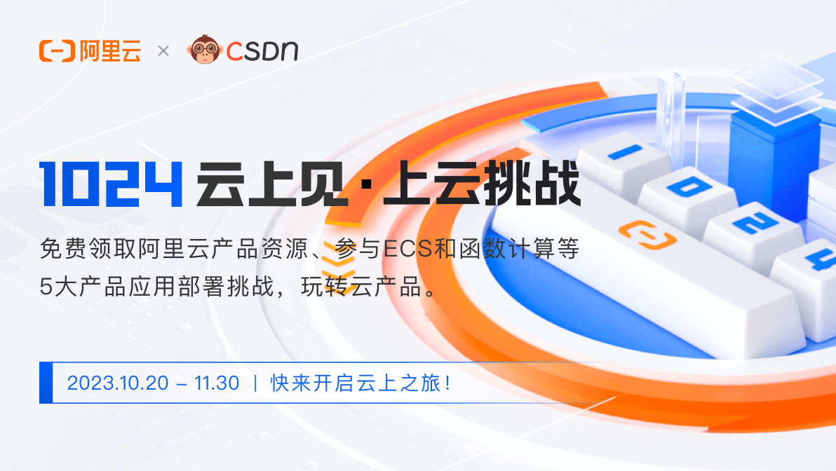 hello~ 各位开发者们,1024云上见 · 上云挑战活动正式开启!【1024云上见 · 上云挑战】,为开发者提供免费领用阿里云云资源,体验云上应用部署! 活动详情:https://developer.aliyun.com/topic/1024cloudup1本次活动提供的阿里云免费试用产品为: 1
