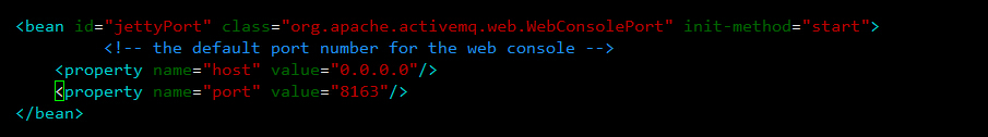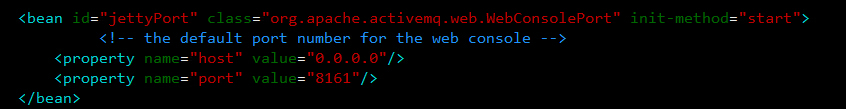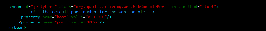 修改并保存之后,就是修改jetty的端口号(修改ACTIVEMQ_HOME/bin/jetty.xml文件),因为实在同一台服务器上,不修改的话,第二个和第三个jetty将启动不了。第activemq-1依然使用默认端口8161,activemq-2使用8162,activemq-3使用8163端口,如下图: